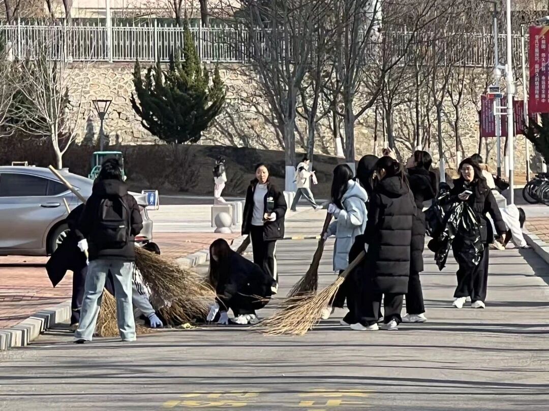 秋风拂过,落叶翩跹。在校园主干道、教学楼周边与绿化区域,志愿者们分工明确、配合默契:有人挥动扫帚,将落叶归拢成堆;有人手执铁锹,将叶片装入收集袋;有人负责搬运整理,有人细致清理草丛杂物。大家有条不紊、干劲十足,来自五湖四海的各年级同学在劳动中加深了解、增进情谊,以实际行动展现务实协作、甘于奉献的精神风貌,成为深秋校园中一道温暖而亮丽的风景。