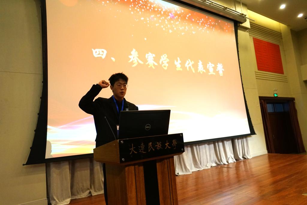 大连民族大学人力资源管理专业崔玄代表参赛同学进行宣誓,并表达了全体参赛选手对主办方与承办院校的诚挚谢意。