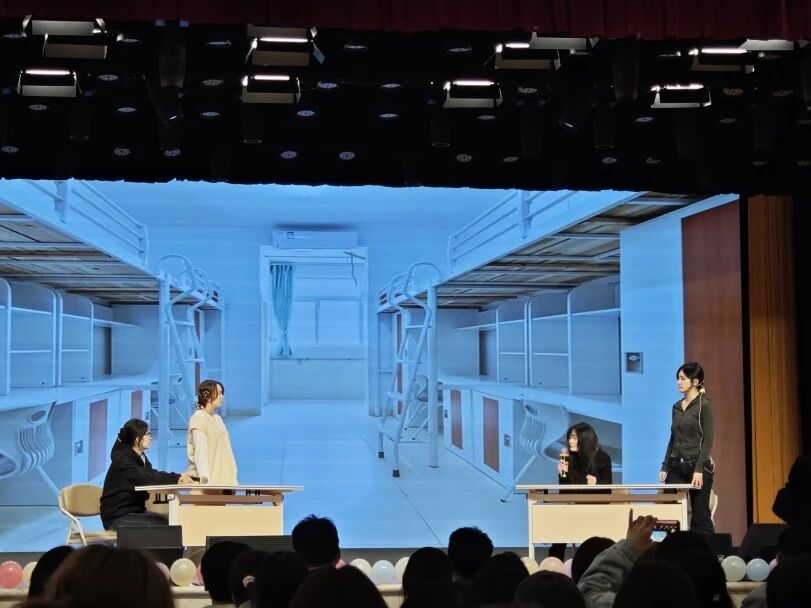 随后,生活管理部同学带来情景剧《寝室烟火与星光》,以鲜活演绎展将安全教育融入宿舍日常的温情与协作之中,生动诠释了学校的“严管厚爱”和师生“爱校如家”的民大文化,现场掌声不断,安全文明的理念在欢笑与感动中深入人心。